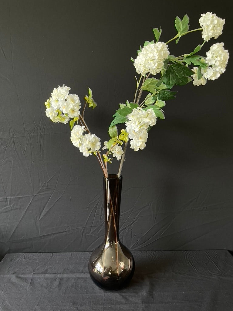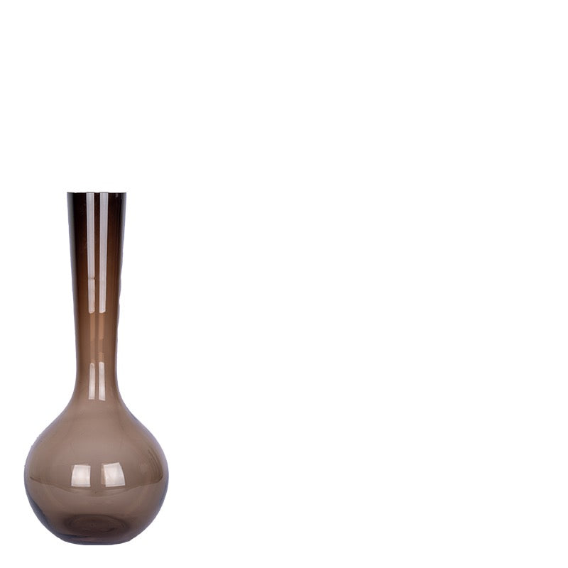 Geef je interieur een stijlvolle touch met deze prachtige bruine glazen vaas met slanke hals en bolle onderkant. De subtiele smoke kleurige afwerking zorgt voor een warme, moderne uitstraling die perfect past in zowel klassieke als eigentijdse interieurs. Leuk met zowel een klassiek- als kleurrijk boeket.