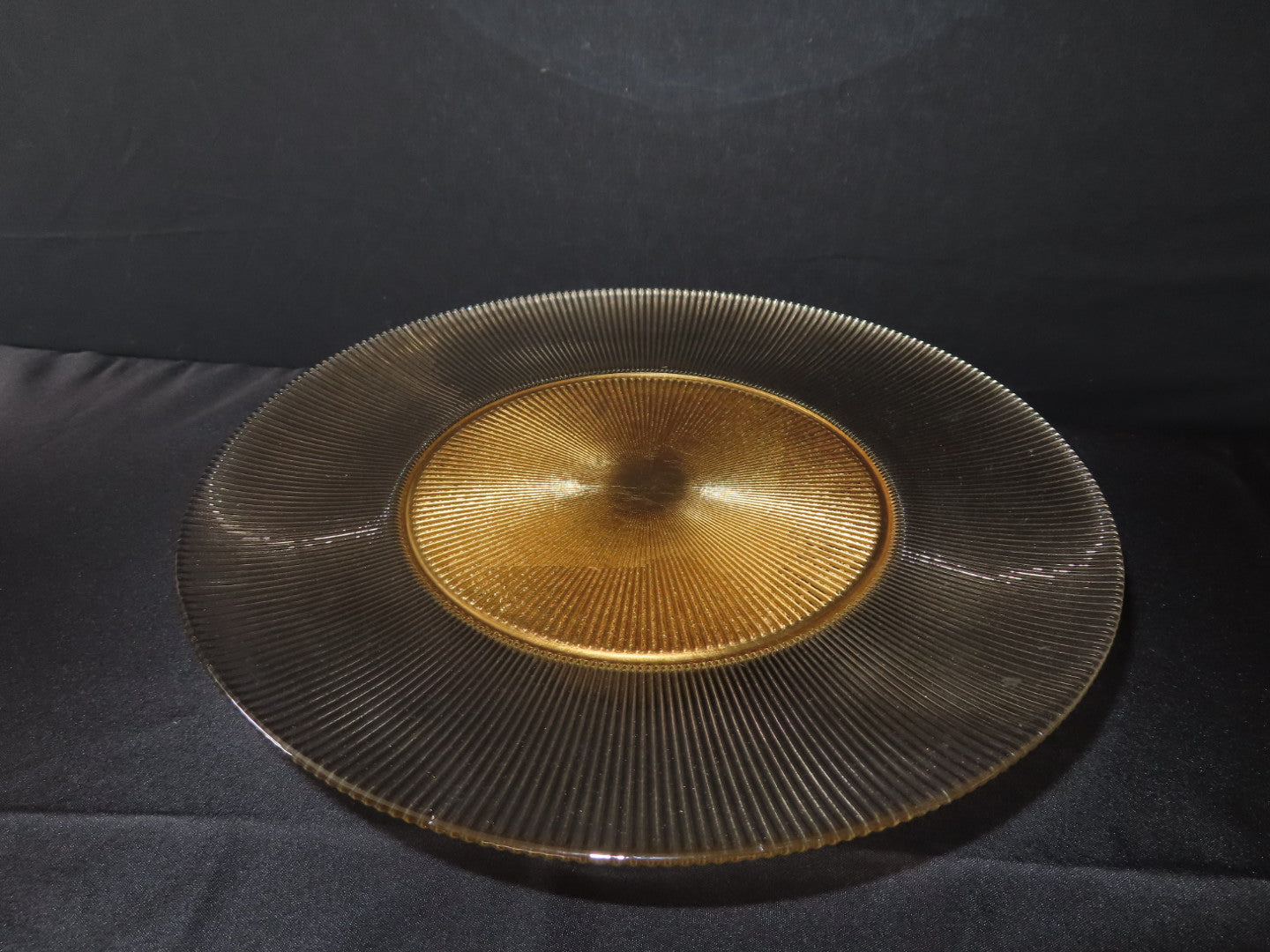 Voeg een vleugje glamour toe aan je tafel met dit schitterende gouden taartplateau. Dit unieke stuk combineert verfijnde elegantie met praktische luxe. Het plateau is vervaardigd uit glas met een schitterende goudtint en heeft een subtiel zonnestraalmotief dat elk gebak prachtig uitlicht. De stevige, goudkleurige voet zorgt voor stabiliteit én een stijlvolle presentatie.